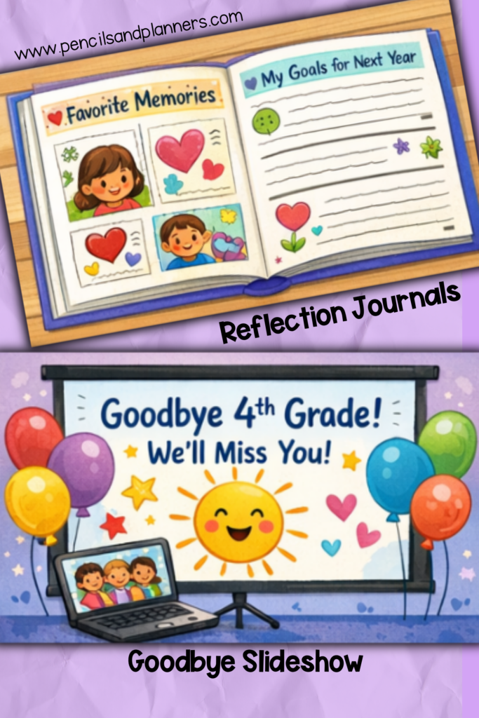 - Reflection Journals: Distribute and create reflection journals and encourage students to write about their thoughts, feelings, and experiences from the school year. Provide prompts to guide their reflections, such as “What was your proudest moment this year?” or “What lessons have you learned?”